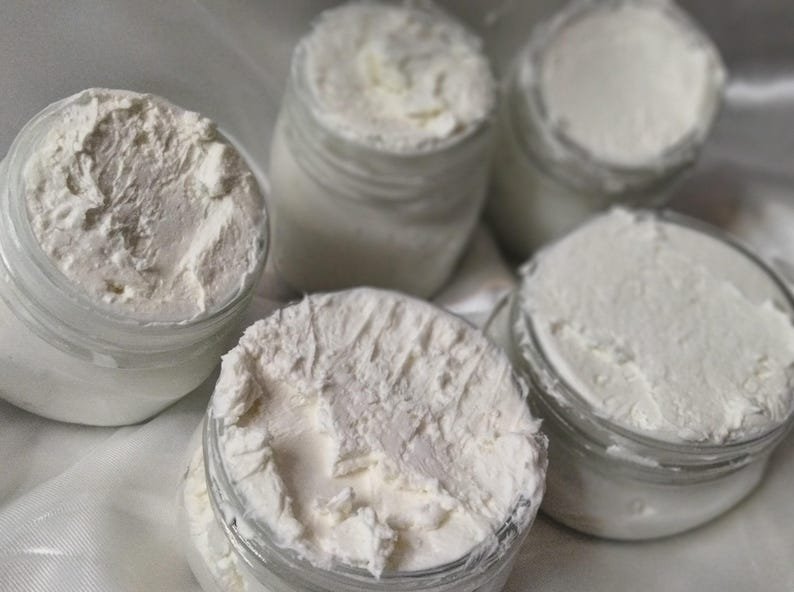 INGREDIENTS: Unrefined Shea Butter, Mango Butter, Avocado Butter, Aloe Vera, Arrowroot Powder, Arnica Flowers, Vitamin E, Fragrance